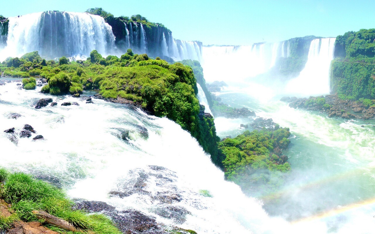 Обои для рабочего стола «Край водопадов» 1280х800 с фильтром vibrance (оригинал 3200х1200)