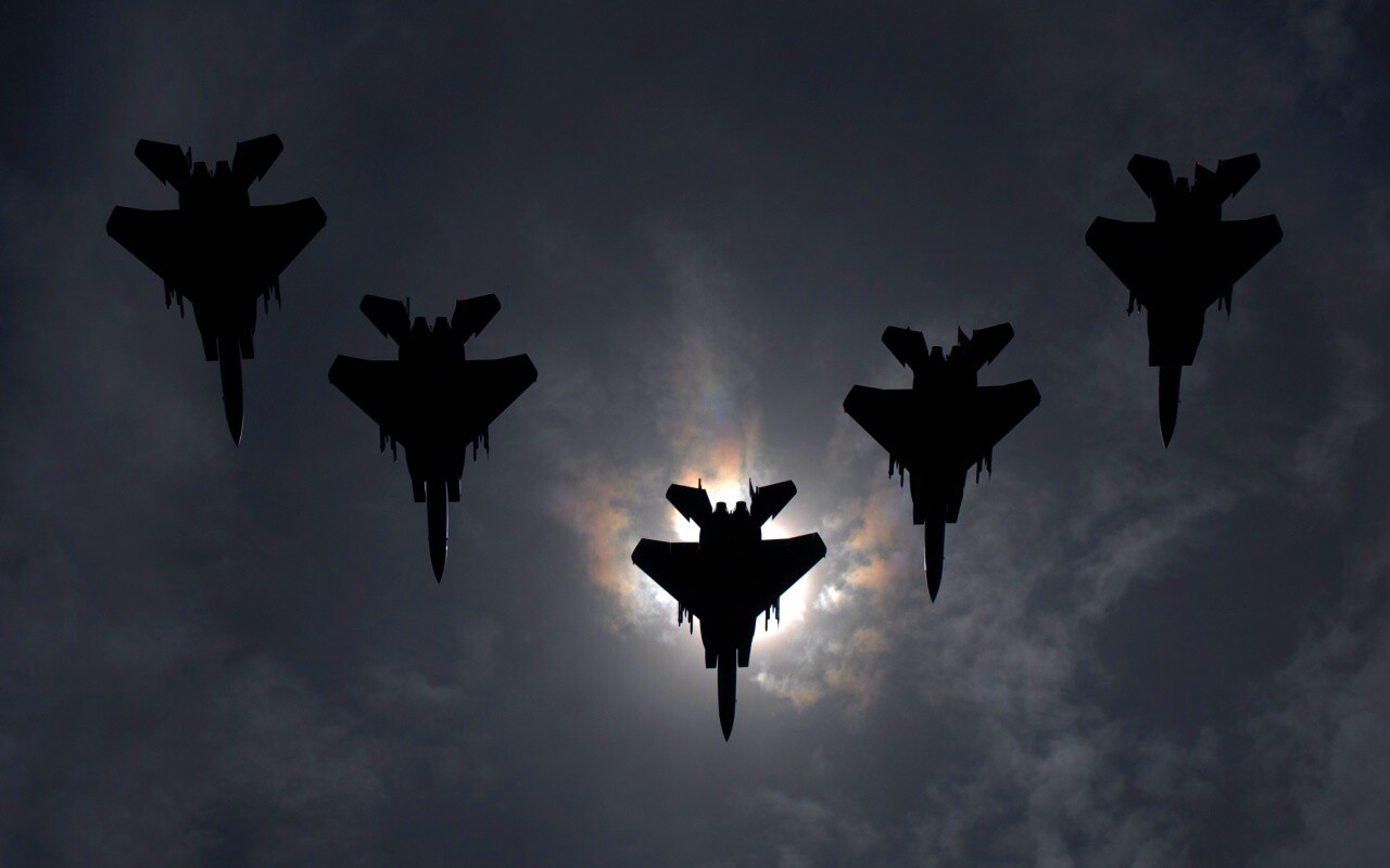 «Ряд истрибителей на фоне солнца»