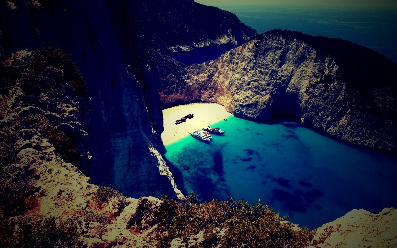 Обои для рабочего стола «Яхты в бухте» 1280х800 с фильтром lomo (оригинал 1920х1200)