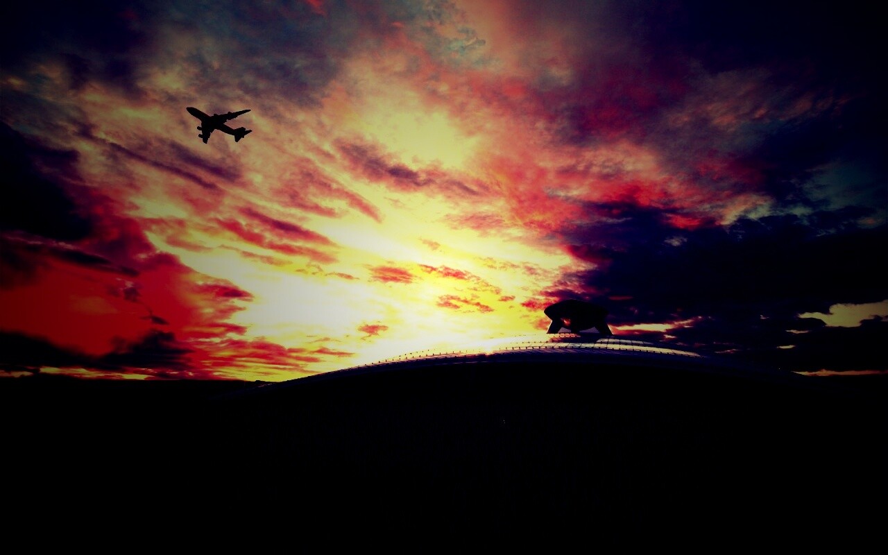 «Самолет в закатном небе»