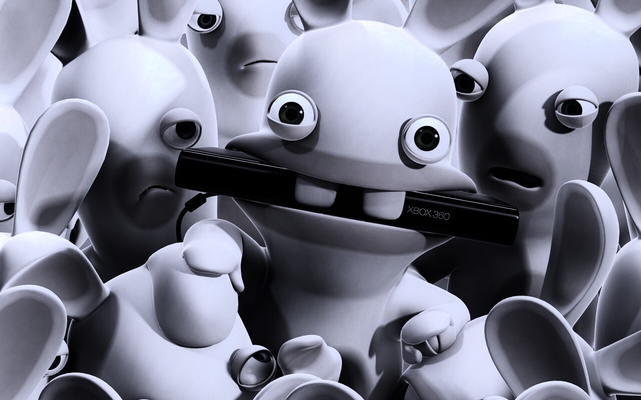 Обои для рабочего стола «Кролик грызет кинект» 1280х800 с фильтром gotham (оригинал 1920х1080)