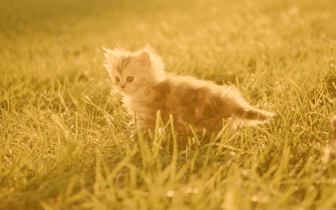 Обои для рабочего стола «Котёнок в траве» 1280х800 с фильтром kelvin (оригинал 1920х1200)