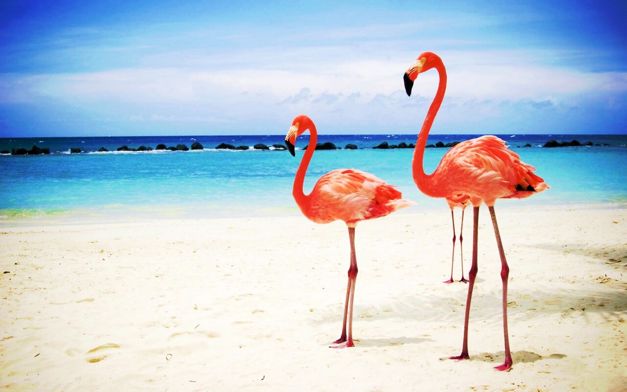 «Розовые фламинго на пляже»