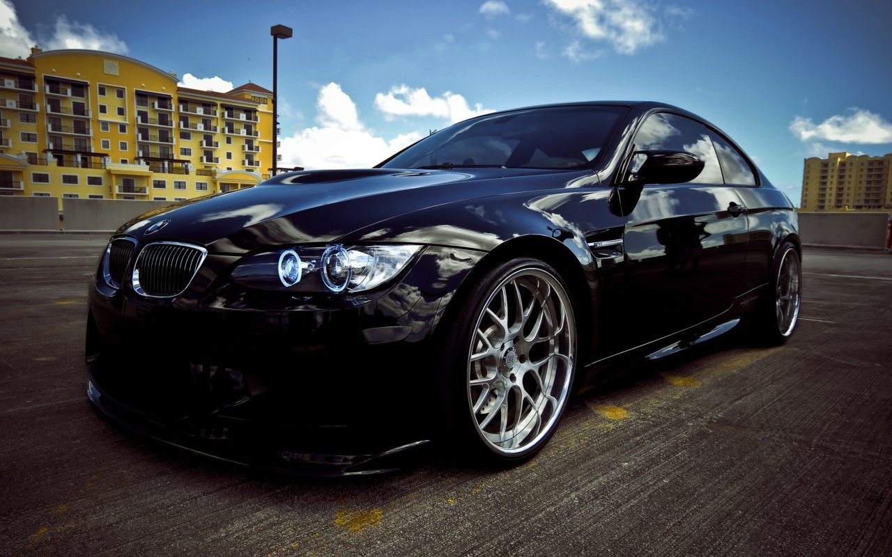 «Красивый черный BMW на парковке»