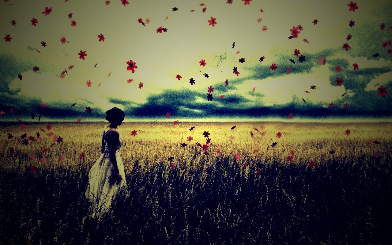 «Грустная девушка в поле травы»