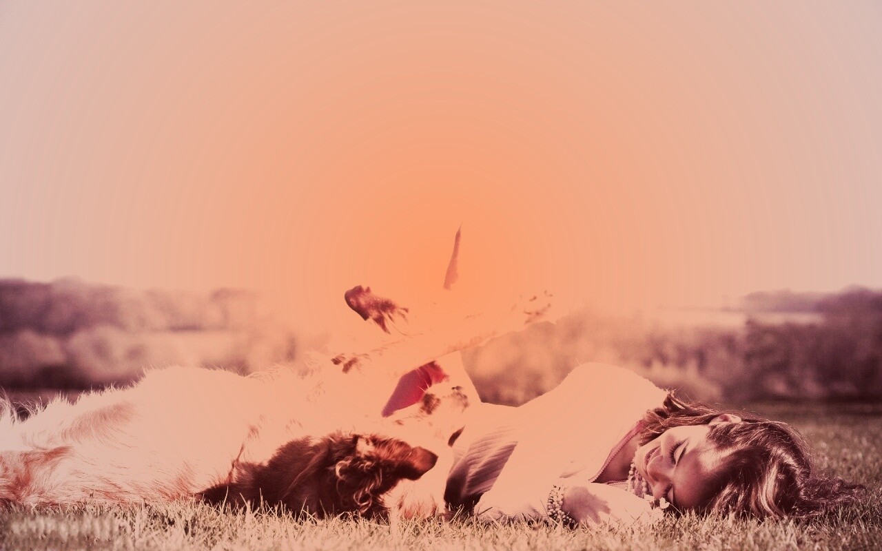«Девушка и собака валяются на траве»