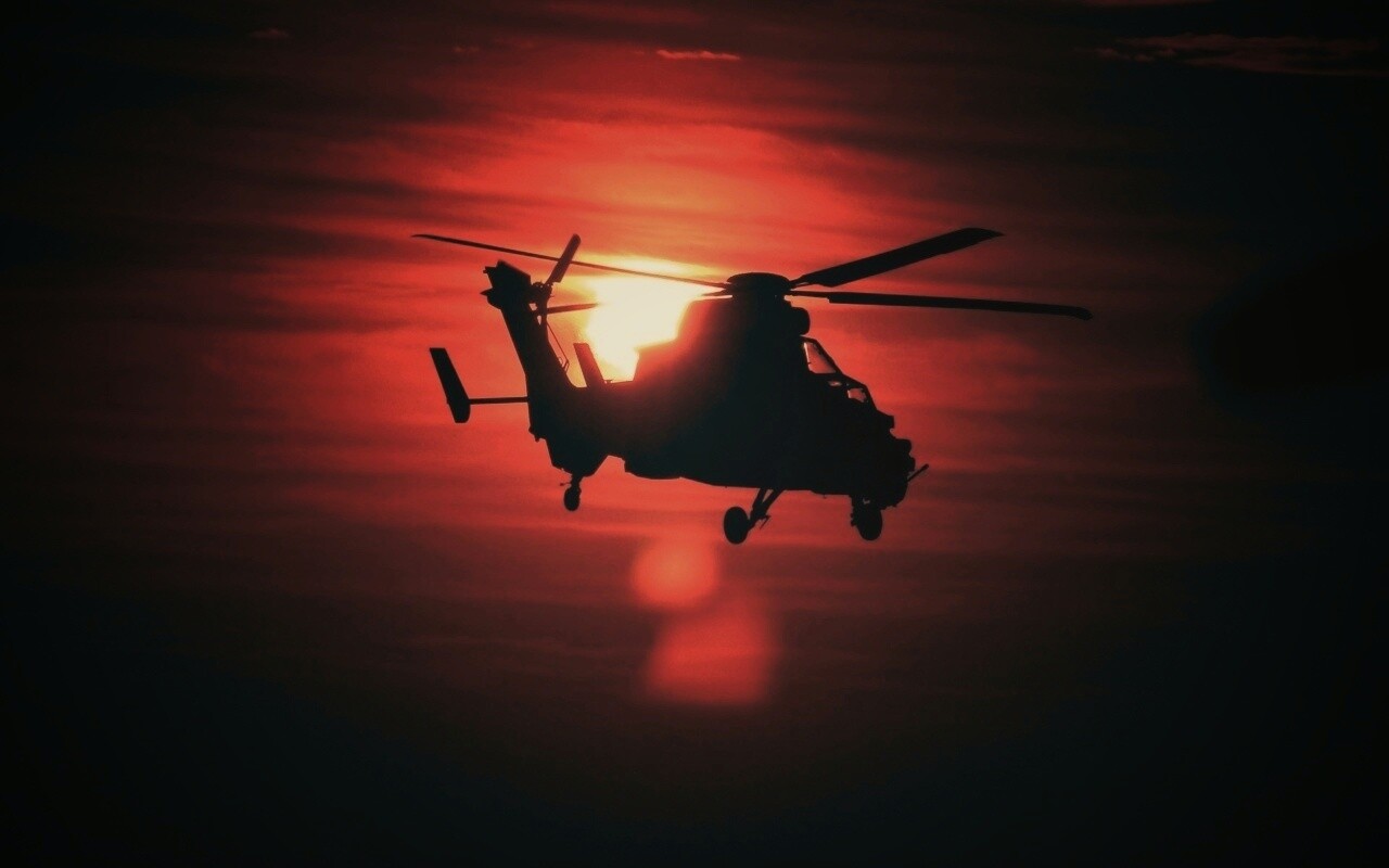 «Вертолет в лучах закатного солнца»