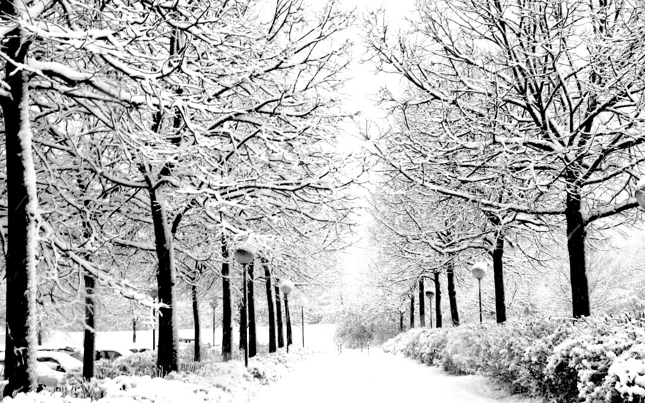 Обои для рабочего стола «Заснеженная аллея» 1280х800 с фильтром inkwell (оригинал 2704х1764)