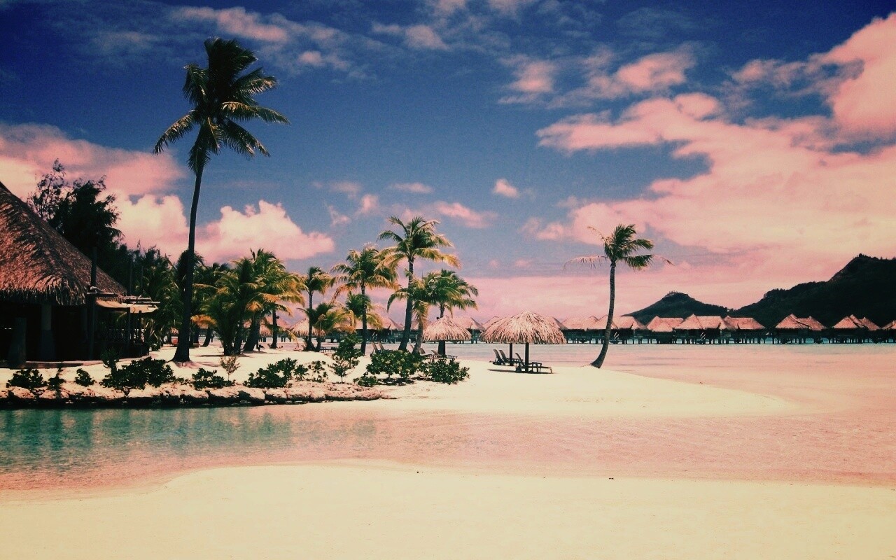 Обои для рабочего стола «Побережье Бора-бора» 1280х800 с фильтром earlybird (оригинал 1920х1200)