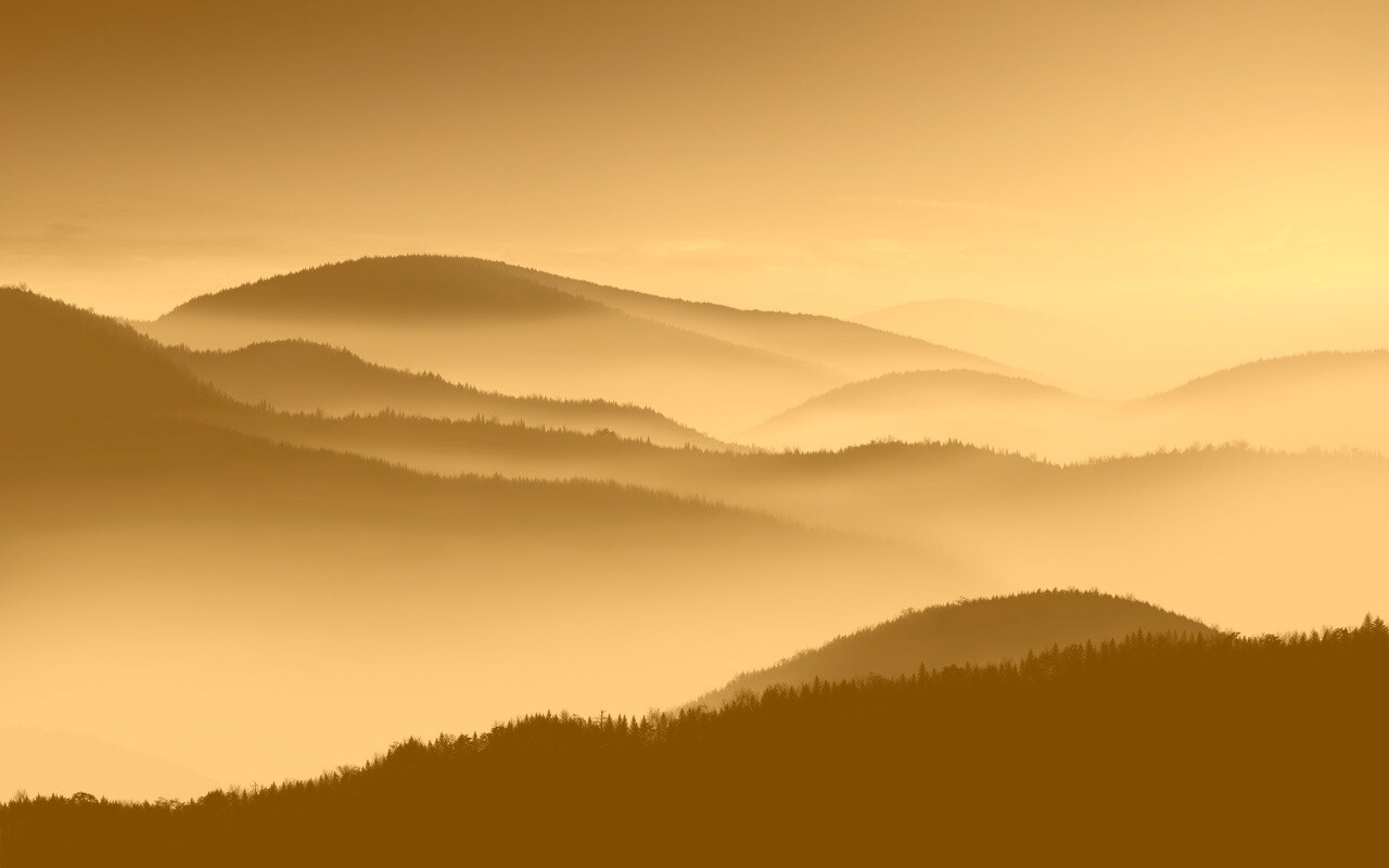 Обои для рабочего стола «Туманные горы» 1280х800 с фильтром kelvin (оригинал 2560х1600)