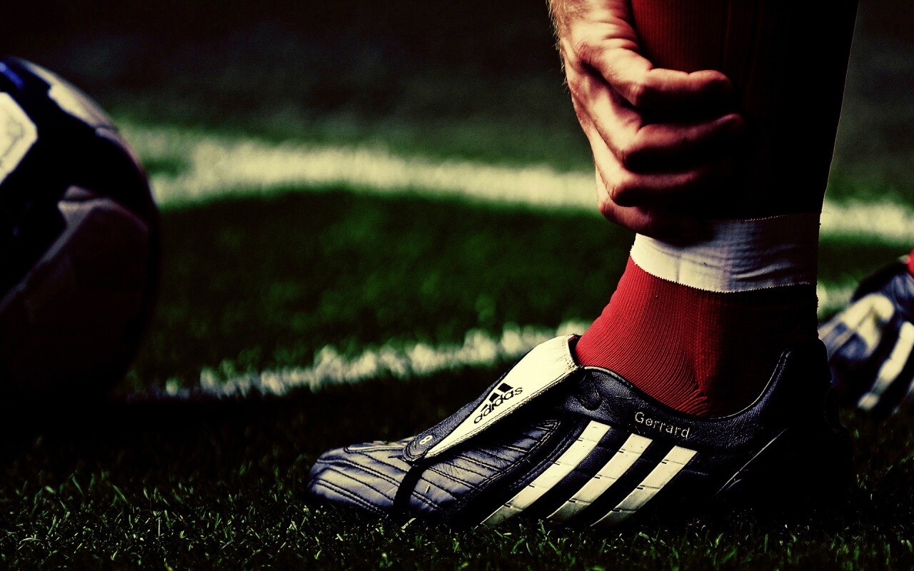 Обои для рабочего стола «Левая нога футболиста в бутсе» 1280х800 с фильтром vibrance (оригинал 1920х1200)