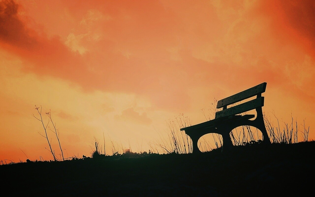 «Силуэт скамейки на фоне неба»