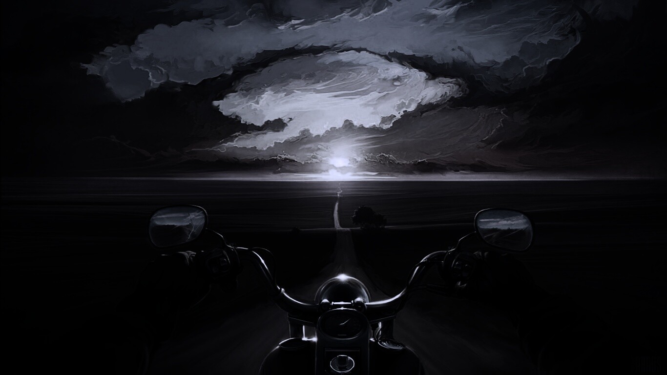Обои для рабочего стола «Дорога на закат» 1366х768 с фильтром gotham (оригинал 1920х1080)