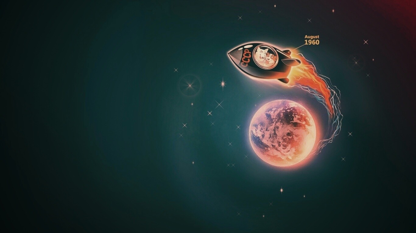 Обои для рабочего стола «Белка и Стрелка летят в космос» 1366х768 с фильтром earlybird (оригинал 1920х1440)