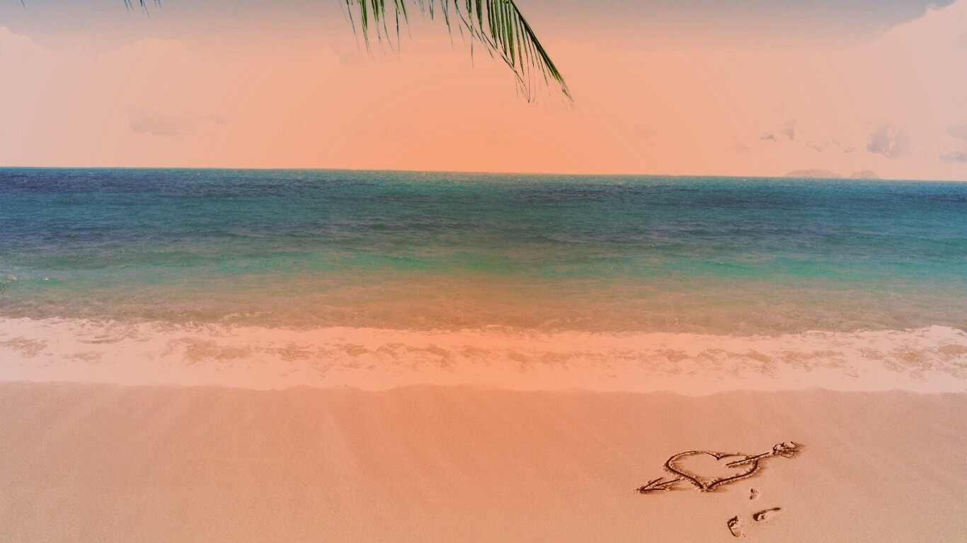 Обои для рабочего стола «Любовь на океанском берегу» 1366х768 с фильтром toaster (оригинал 1600х1200)