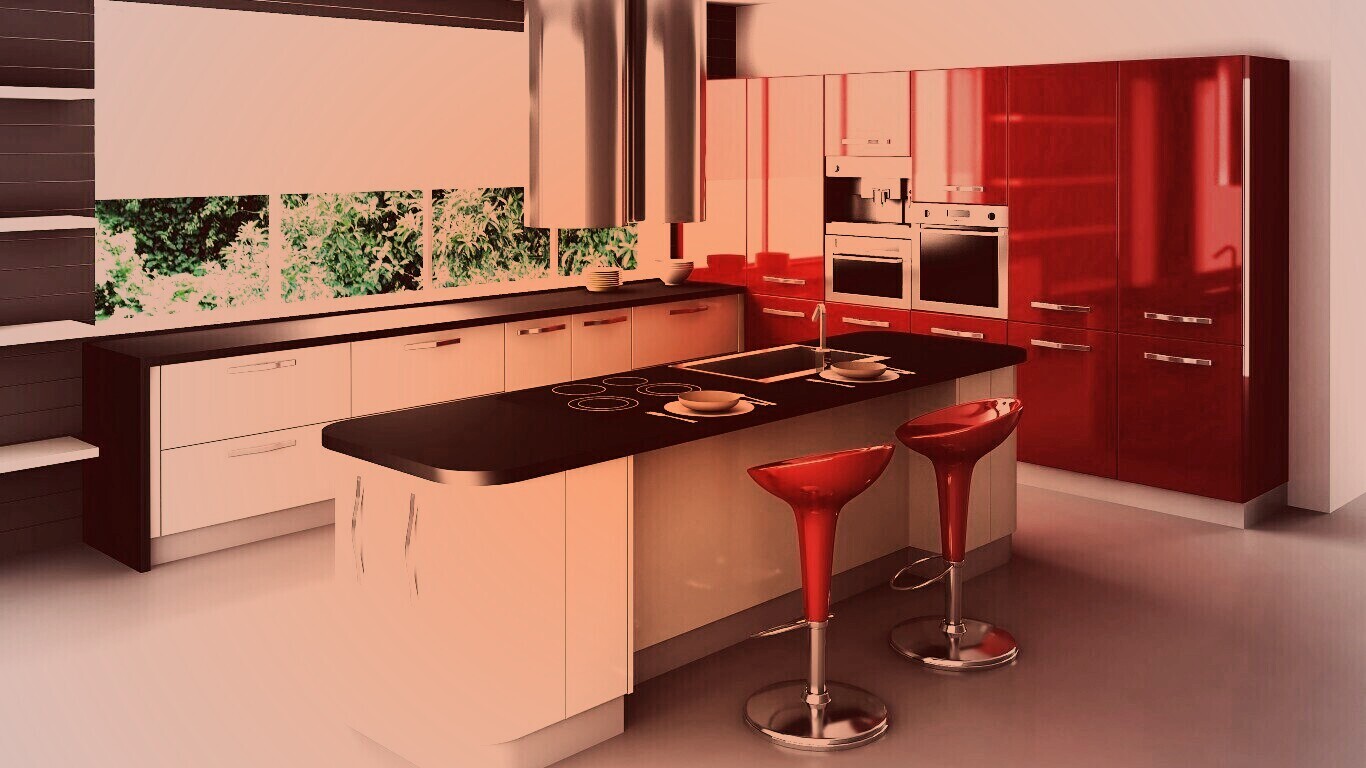 Обои для рабочего стола «Кухня, рендер» 1366х768 с фильтром toaster (оригинал 2560х2048)