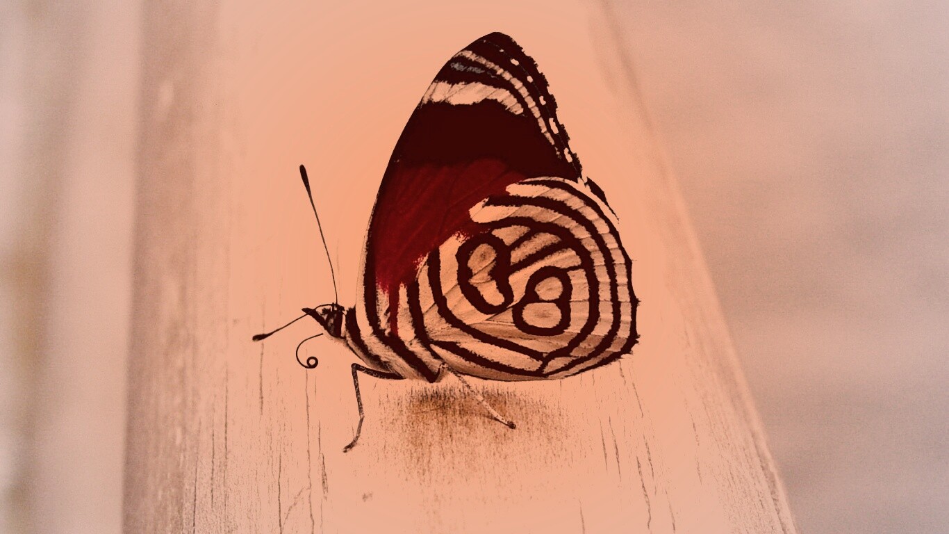 Обои для рабочего стола «Бабочка на бревне» 1366х768 с фильтром toaster (оригинал 1600х1200)