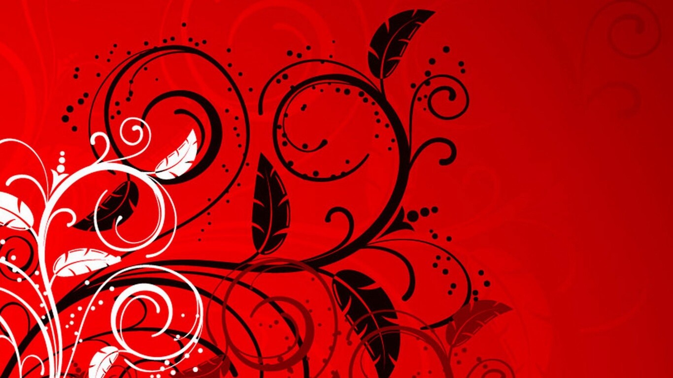 «Черно-белые листики на красном фоне»