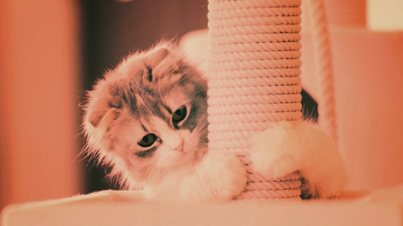 «Пушистая кошка с когтеточкой»