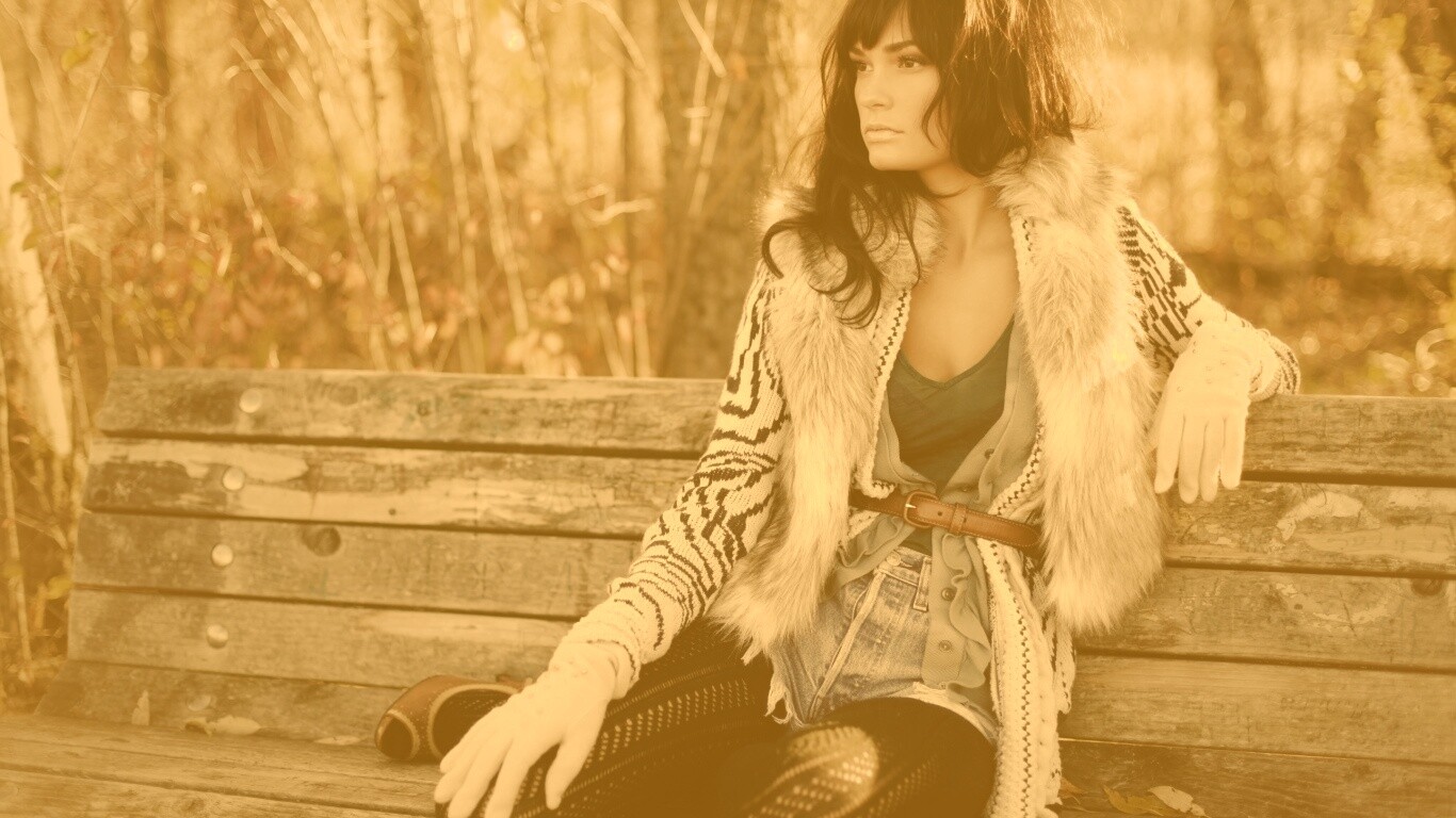 «Красивая девушка сидит на скамейке»