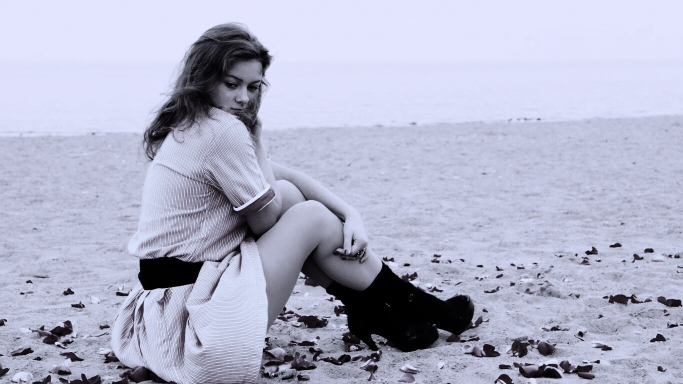 «Девушка среди лепестков на пляже»