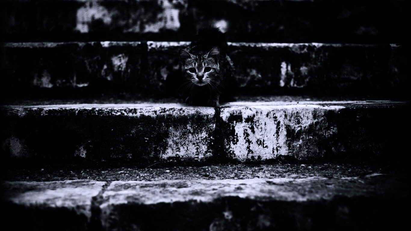 «Растрепанная кошка на ступеньках лестницы»