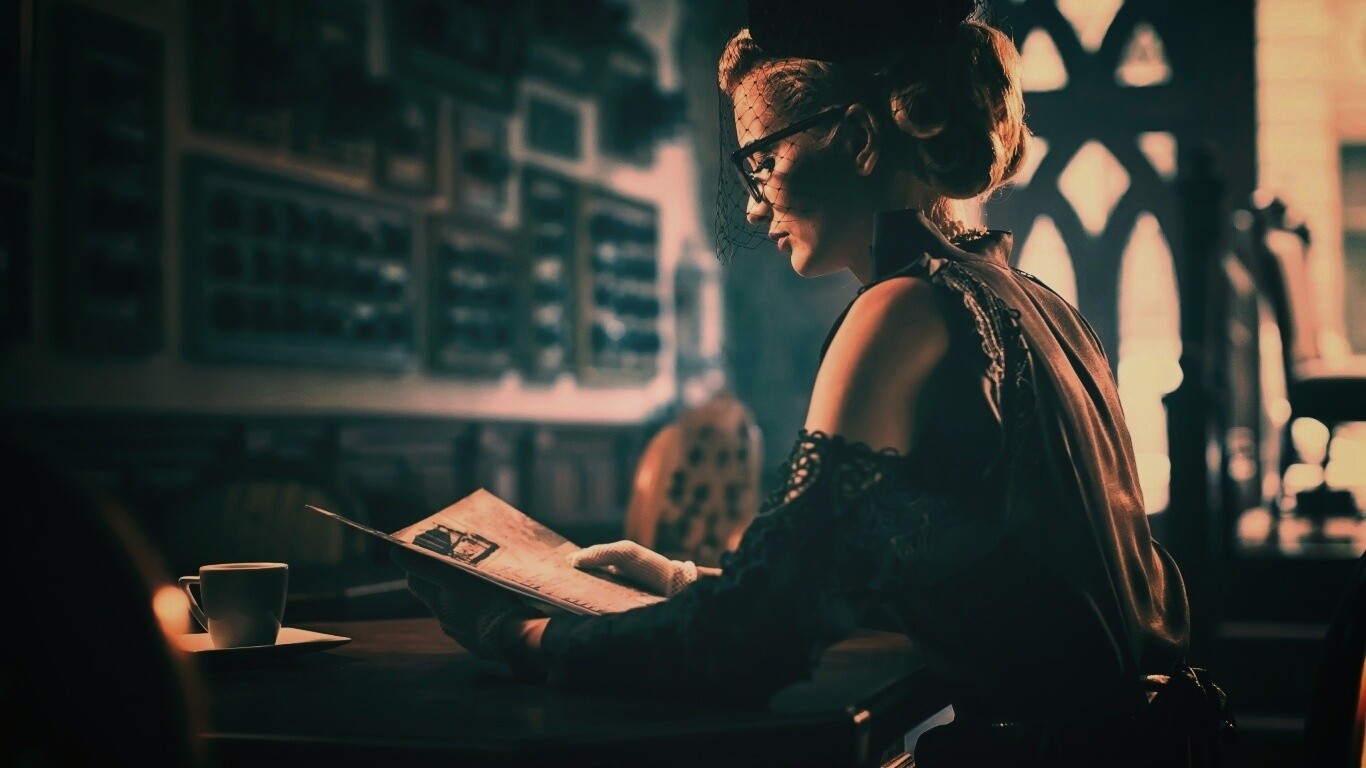 «Витажная девушка в кафе»