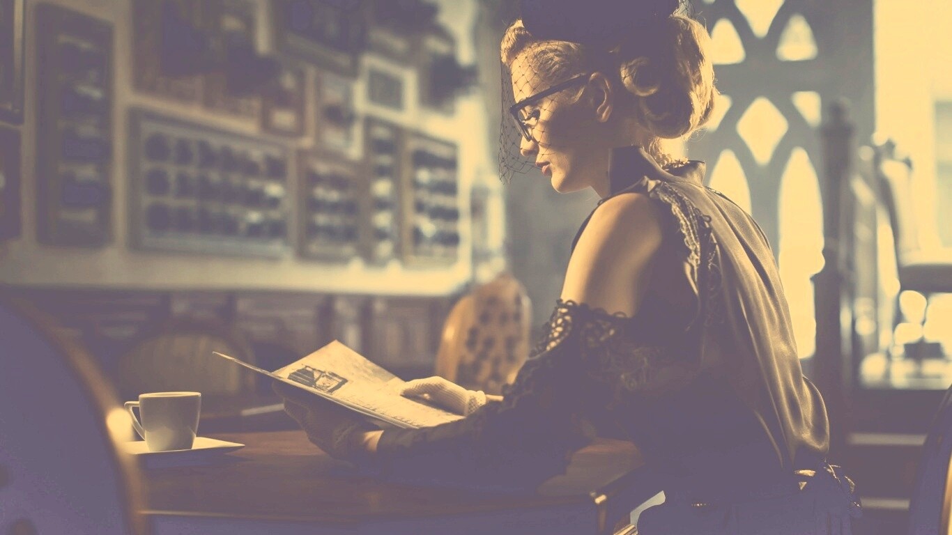 «Витажная девушка в кафе»