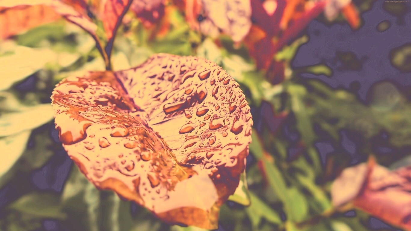 «Красный лист в каплях воды»