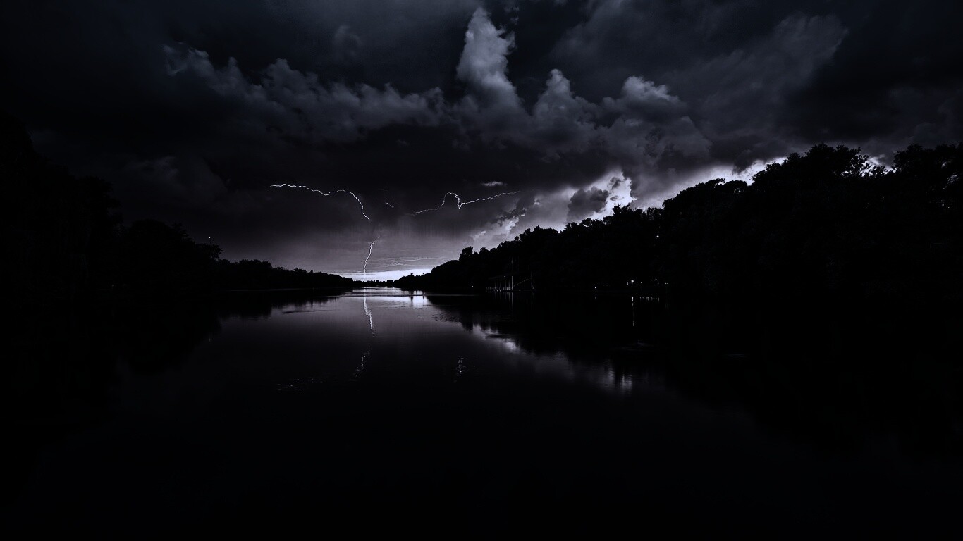 «Молнии на фоне заката, стандартные обои mac»