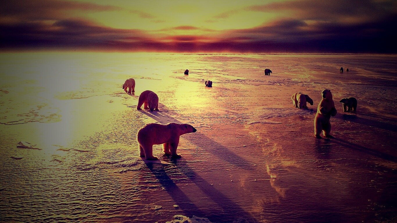Обои для рабочего стола «Полярные медведи» 1366х768 с фильтром lomo (оригинал 1920х1200)