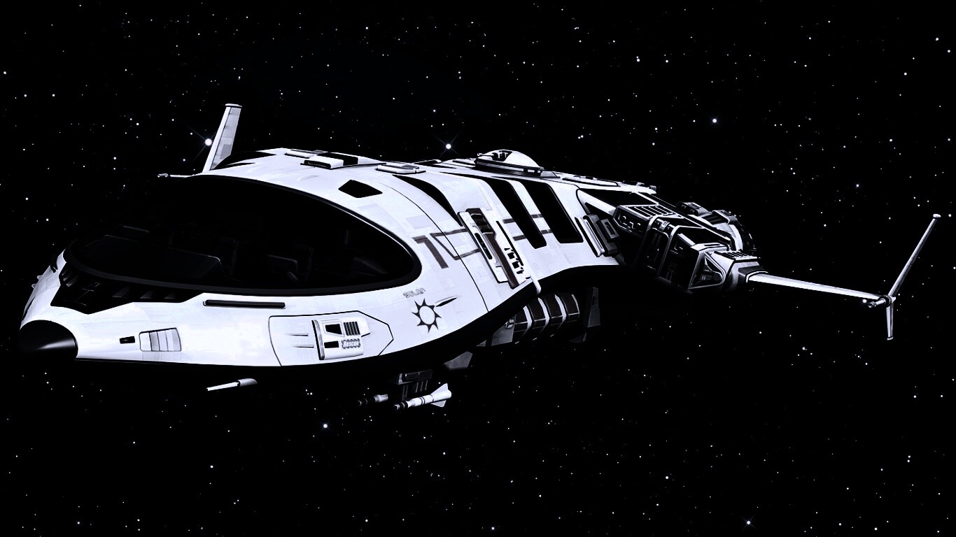 Обои для рабочего стола «Космический корабль» 1366х768 с фильтром gotham (оригинал 1920х1080)