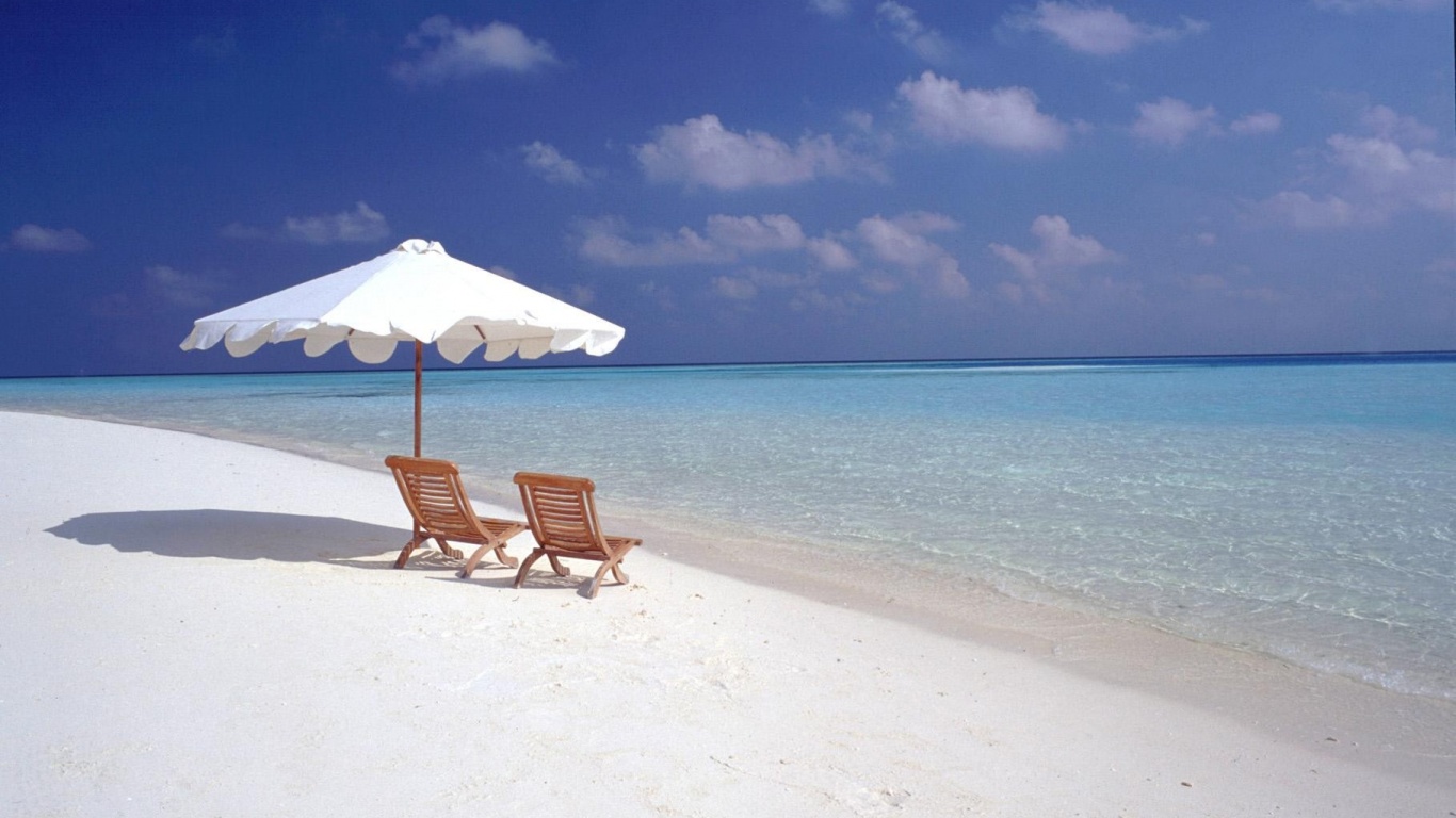«Песчаный пляж с двумя жезлонгами»