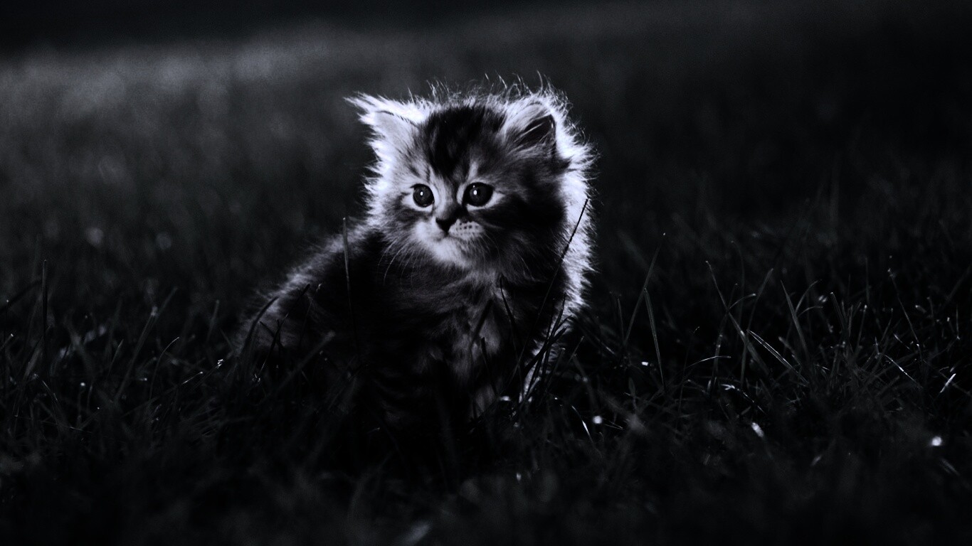 «Пушистый котенок в траве»