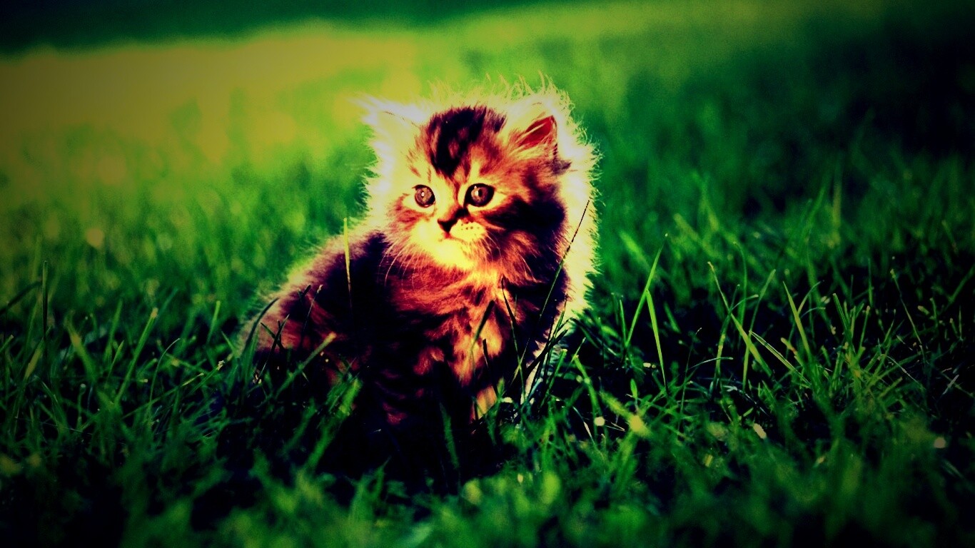 «Пушистый котенок в траве»