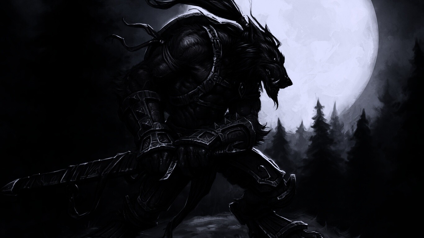 Обои для рабочего стола «Волк оборотень» 1366х768 с фильтром gotham (оригинал 1920х1200)