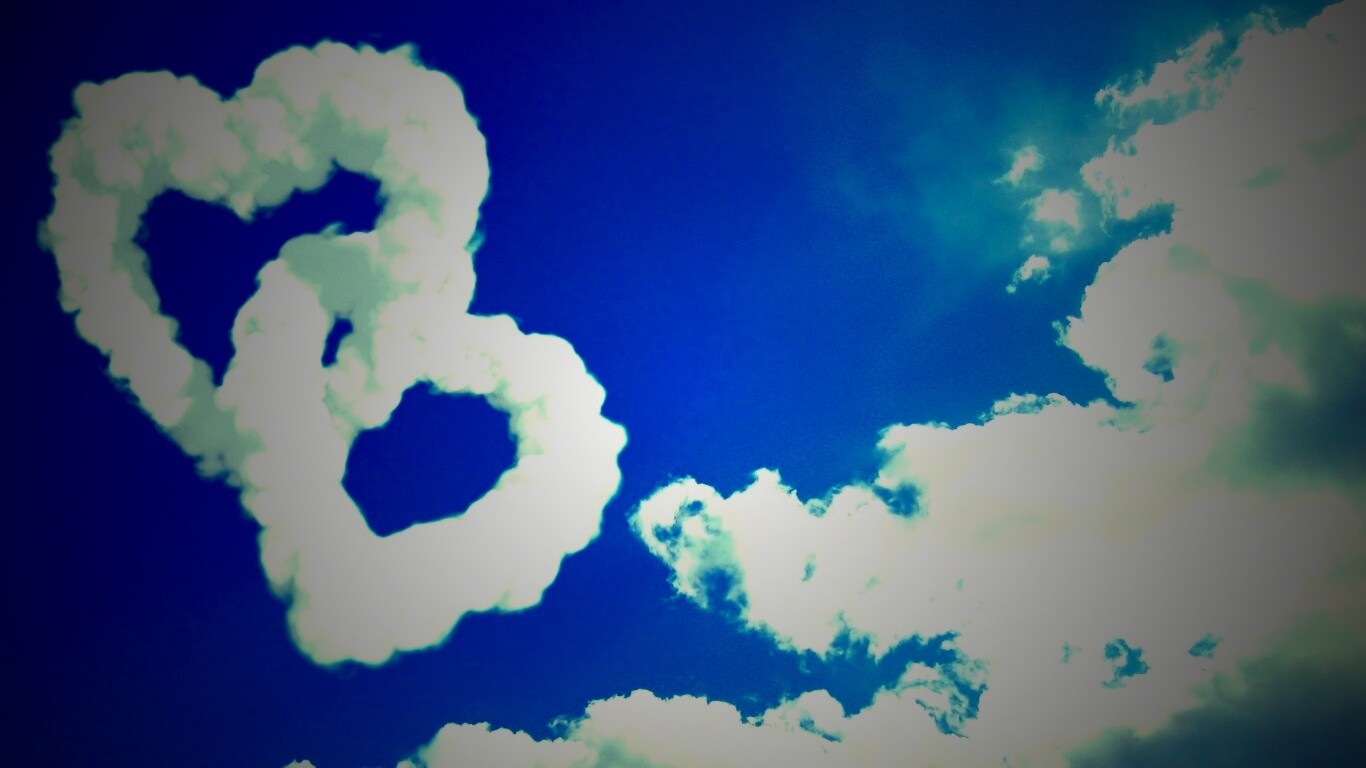 Обои для рабочего стола «Облака в виде сердца» 1366х768 с фильтром lomo (оригинал 2560х1600)