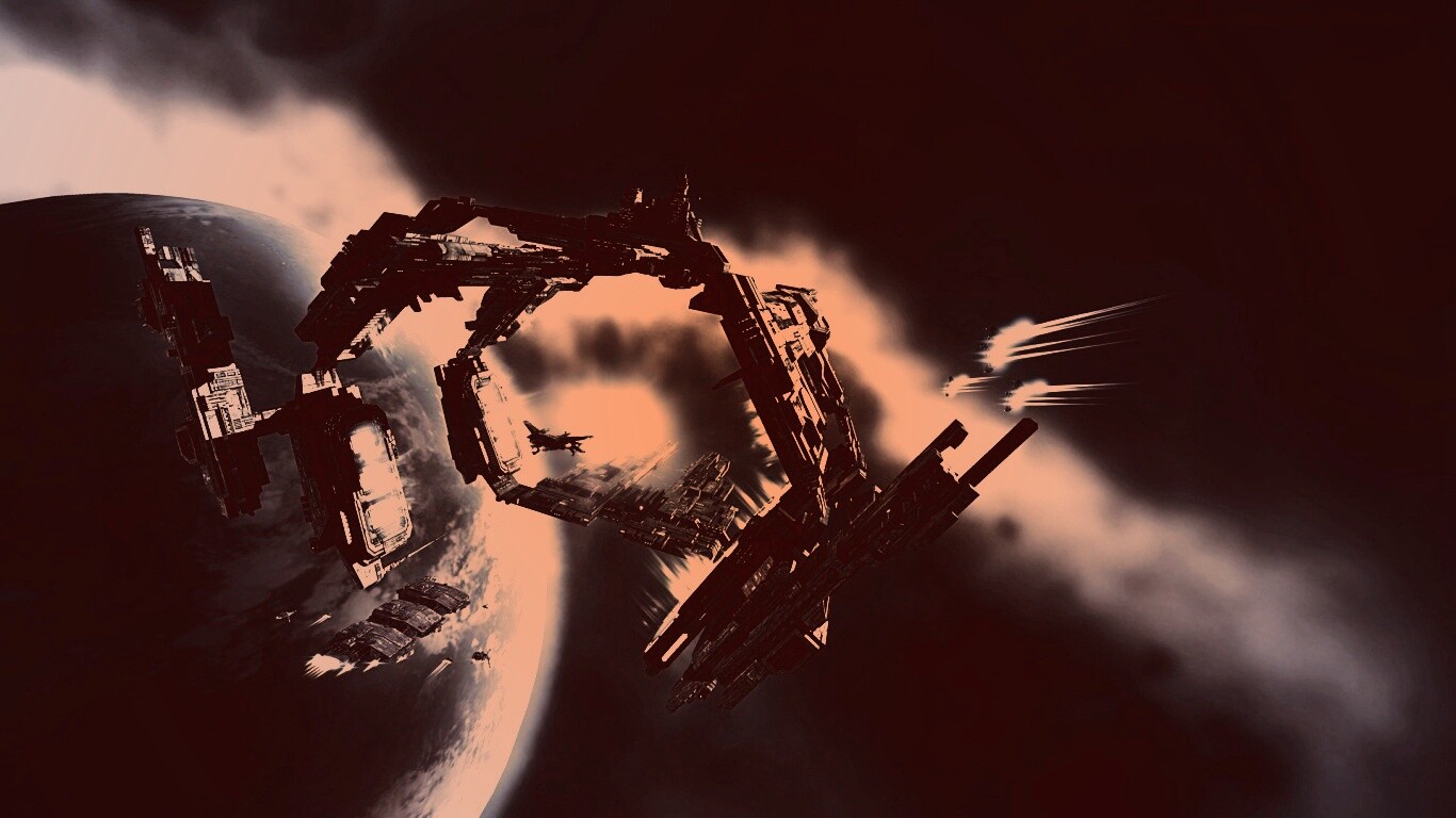Обои для рабочего стола «Космический корабль» 1366х768 с фильтром toaster (оригинал 1920х1080)
