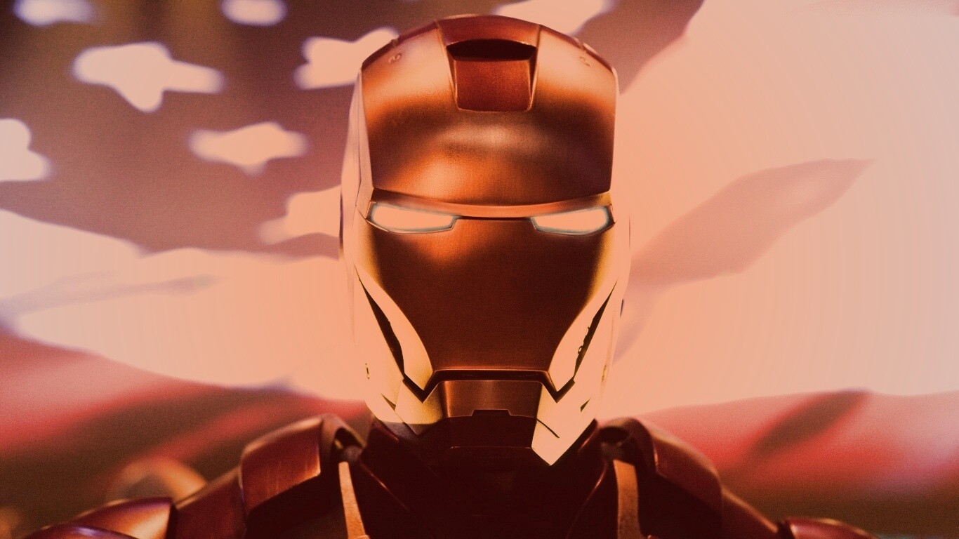Обои для рабочего стола «Железный человек на фоне американского флага» 1366х768 с фильтром toaster (оригинал 3999х2666)