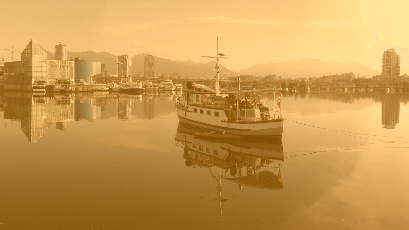 Обои для рабочего стола «Городская панорама» 1366х768 с фильтром kelvin (оригинал 3840х1200)