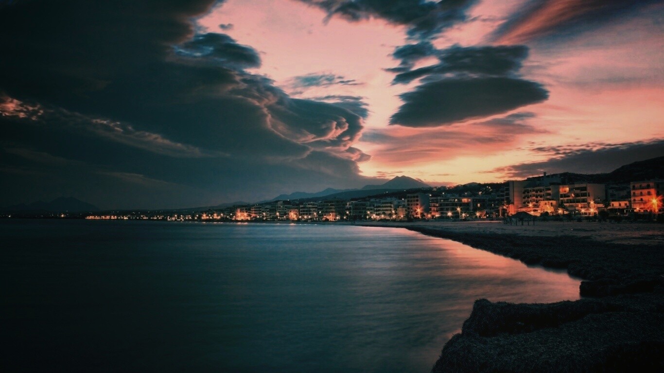 «Красивый закат над городом у моря»