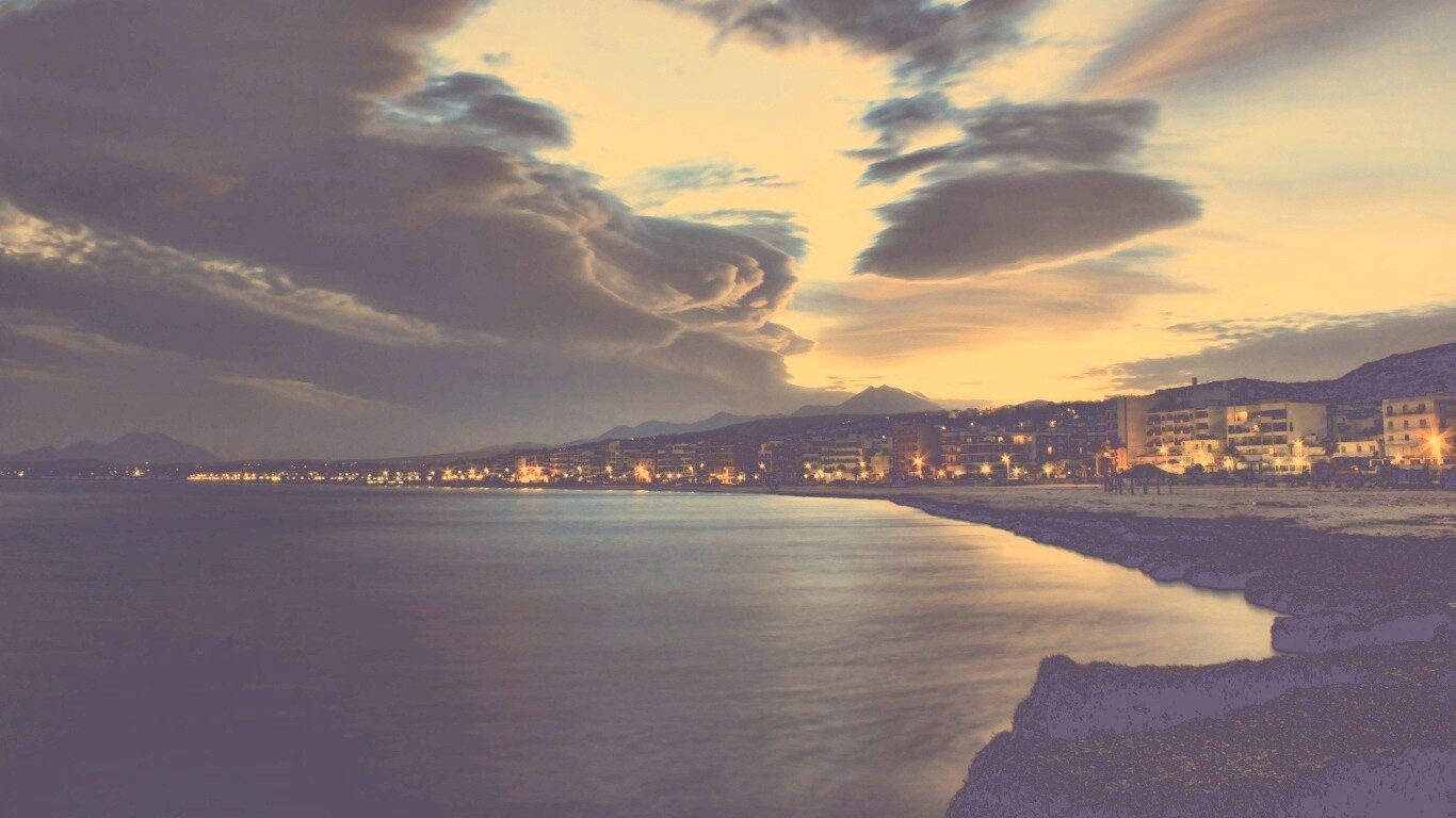 «Красивый закат над городом у моря»