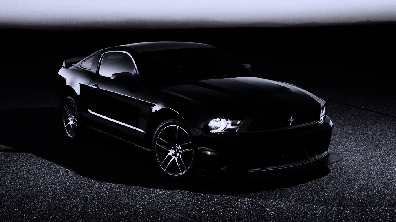 Обои для рабочего стола «Черный Форд Мустанг с красными полосами» 1366х768 с фильтром gotham (оригинал 1920х1200)