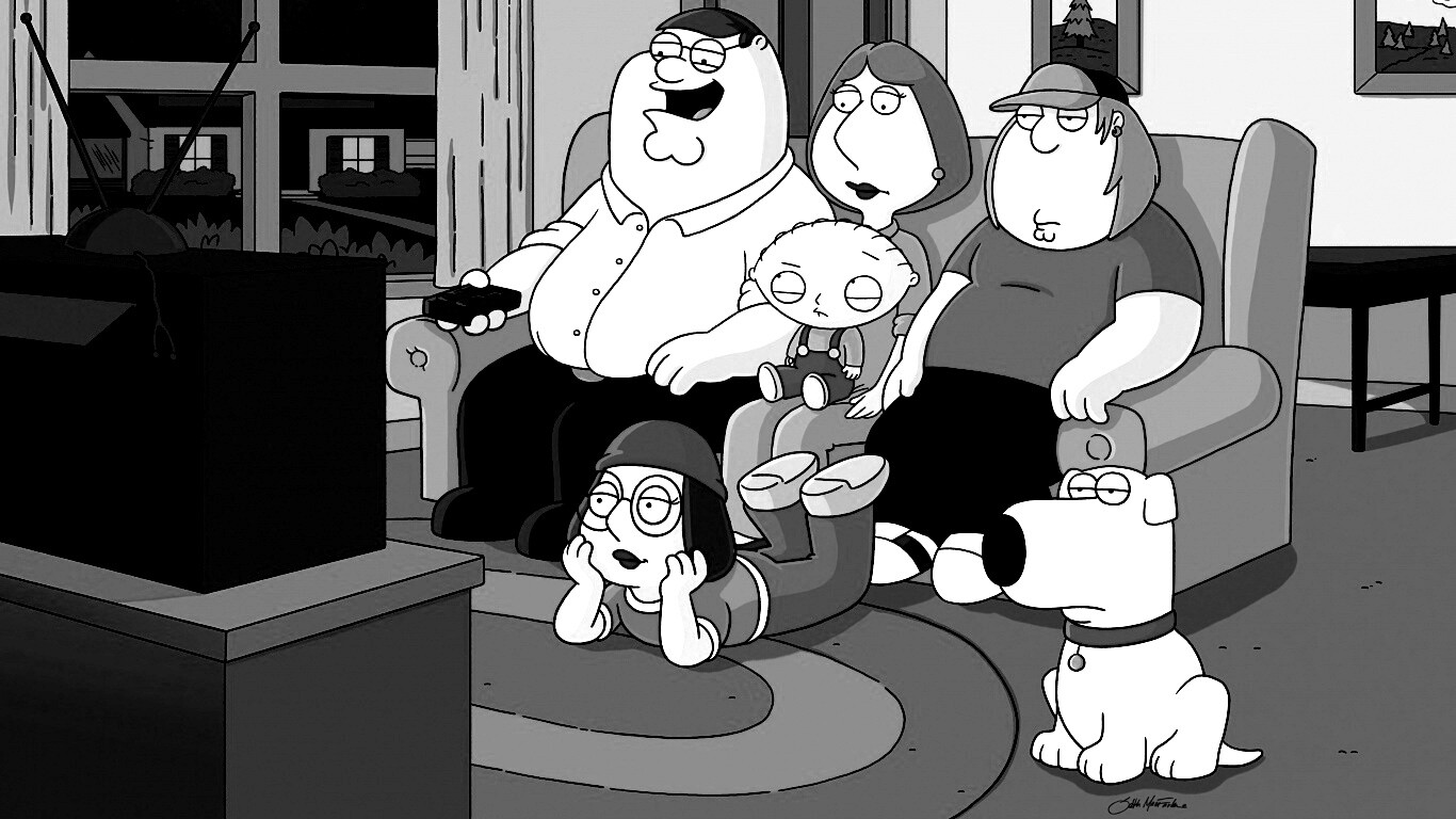 «Гриффины всей семьей перед телевизором»