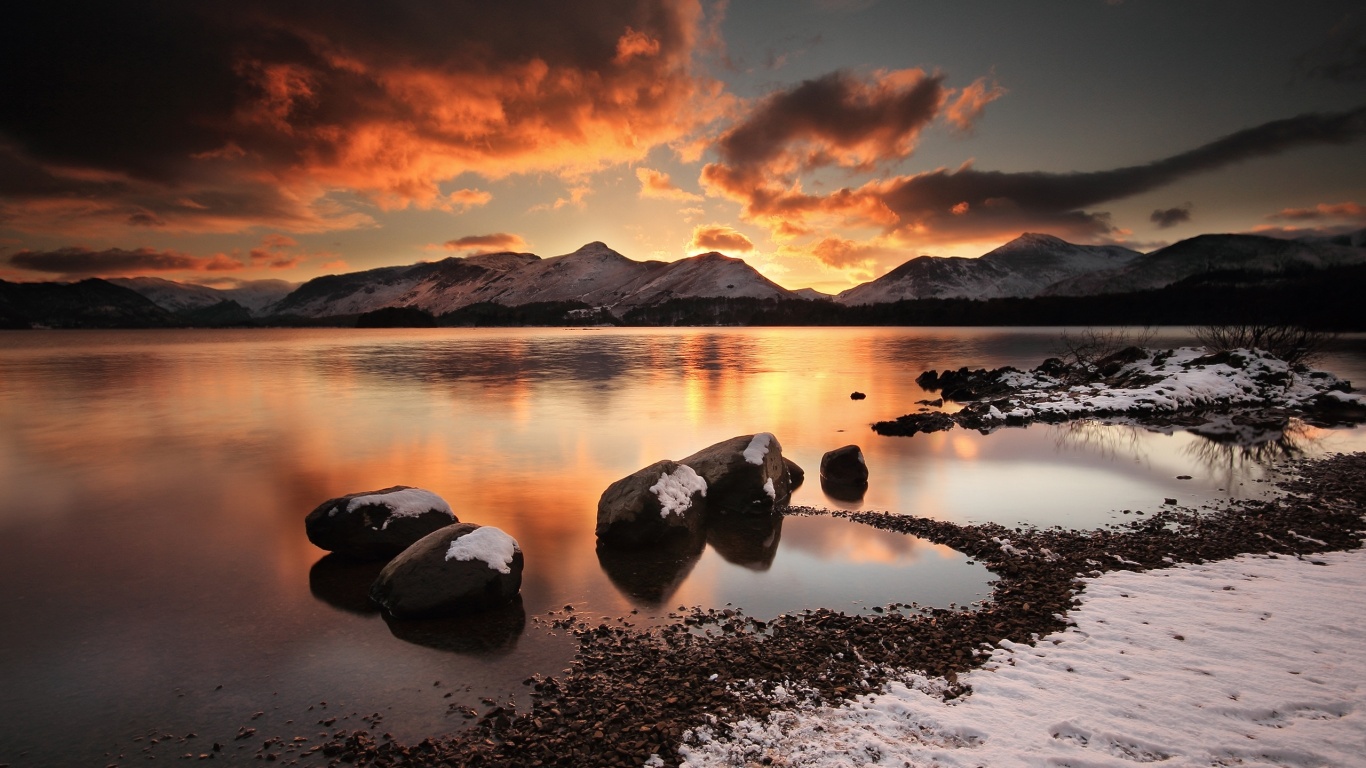 Обои для рабочего стола «Картинный закат на озере» 1366х768 (оригинал 2560х1600)