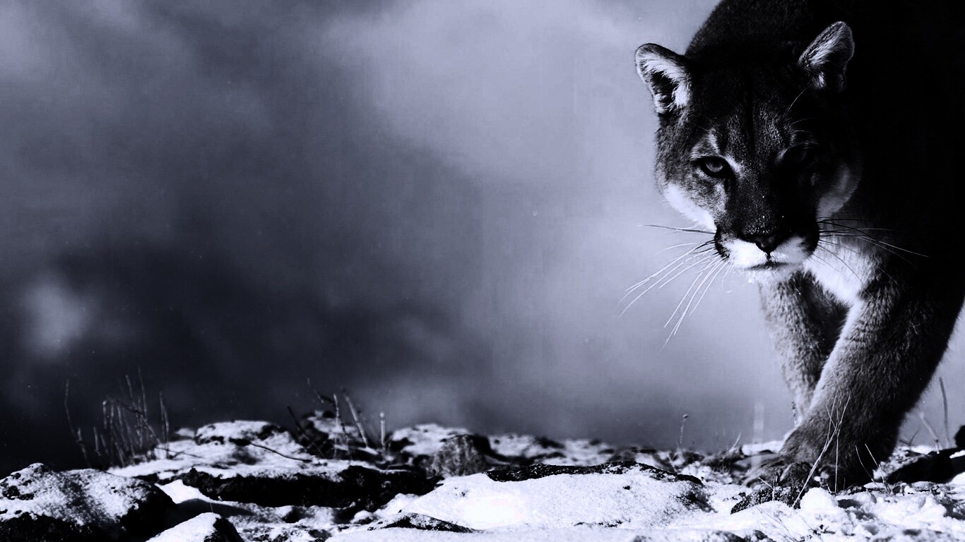 Обои для рабочего стола «Пума с грозным взглядом» 1366х768 с фильтром gotham (оригинал 1920х1200)