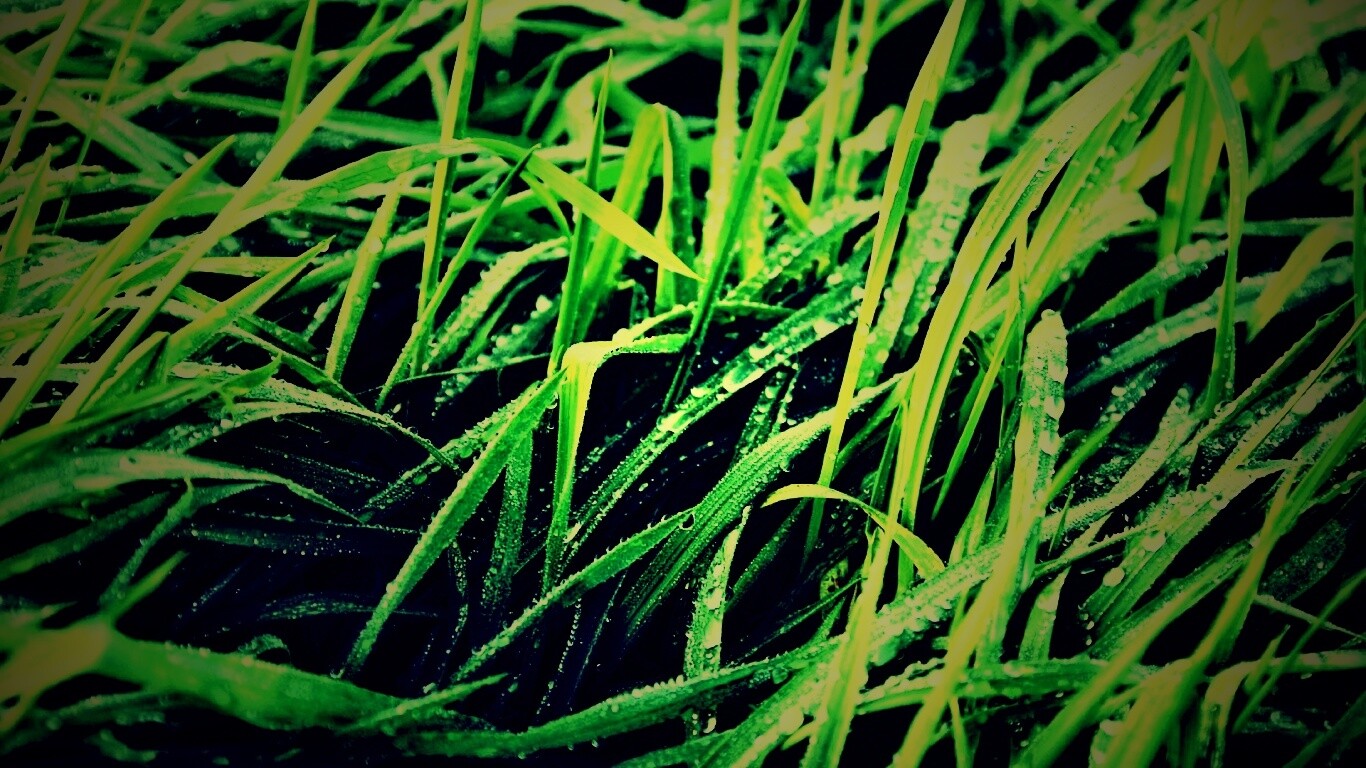 Обои для рабочего стола «Роса на траве» 1366х768 с фильтром lomo (оригинал 1920х1200)