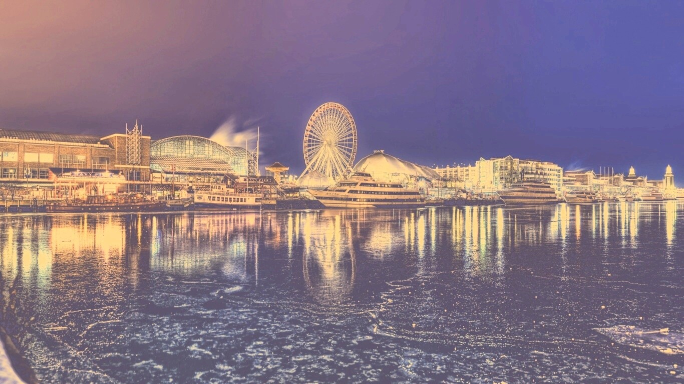 Обои для рабочего стола «Причал для яхт» 1366х768 с фильтром nashville (оригинал 2558х1200)
