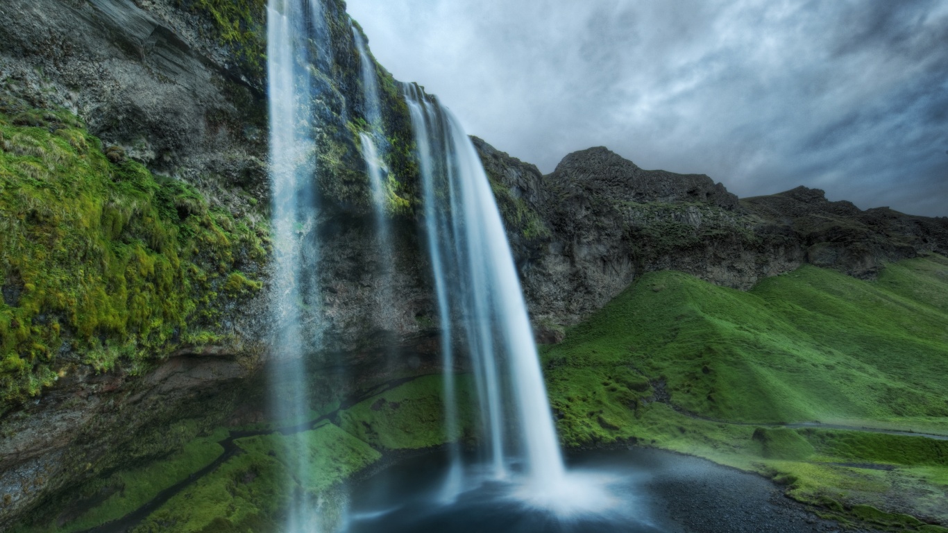 Обои для рабочего стола «Нарисованный водопад» 1366х768 (оригинал 3000х1911)