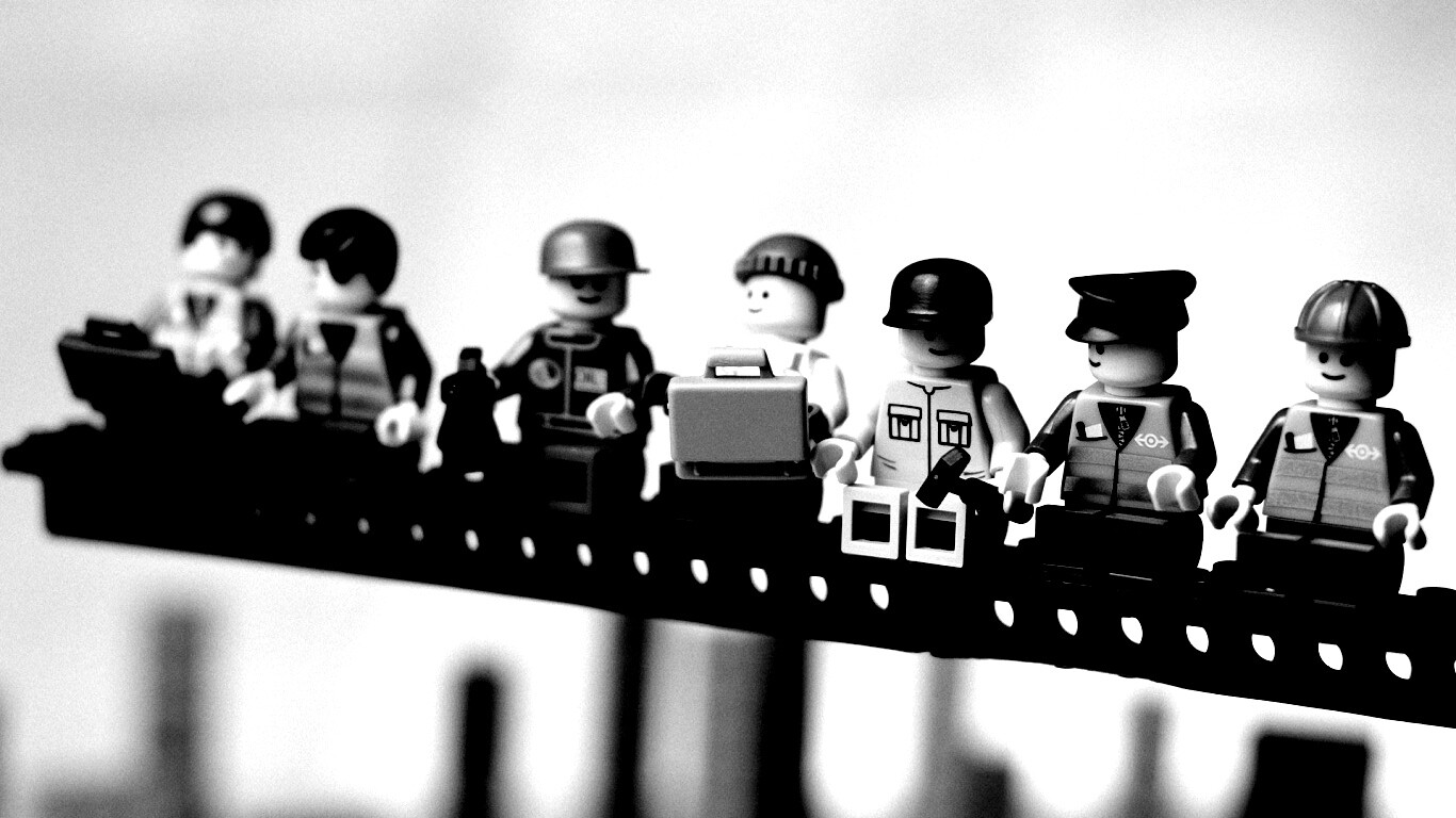 «Lego строители обедают на балке»